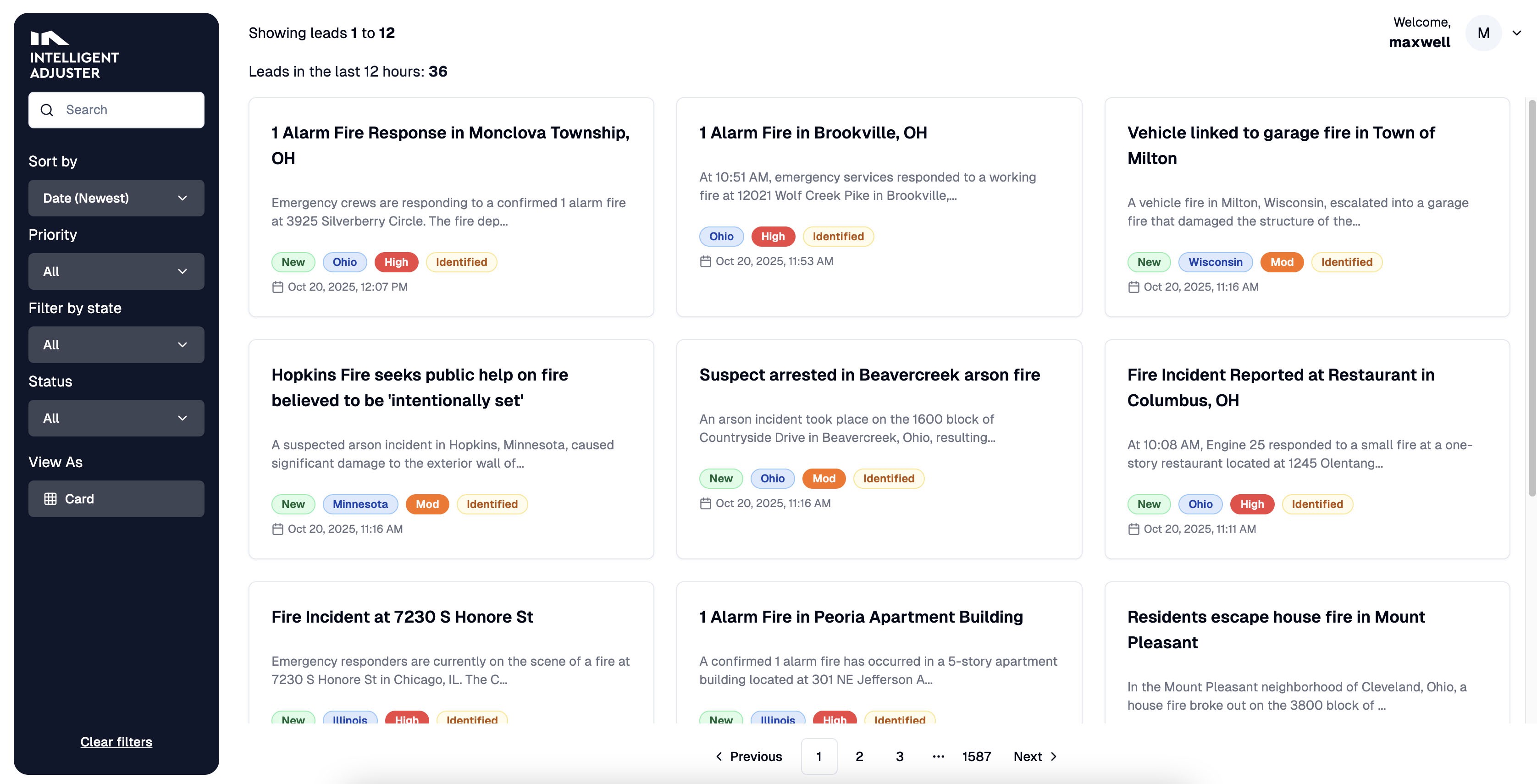 Track verified property losses in real time, with key details like location, priority, and loss type to spot high-value leads fast.